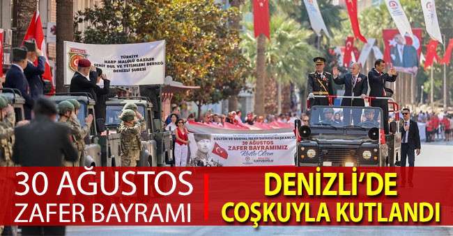 30 Ağustos Zafer Bayramı’nın 102. yıldönümü Denizli’de törenlerle kutlandı. Programa Pamukkale Kaymakamlığın önünde Atatürk büstüne çelenk sunma ile başladı. Denizli Valisi Ömer Faruk Coşkun, Denizli Büyükşehir Belediye Başkanı Bülent Nuri Çavuşoğlu ve 11. Komando Tugay ve Garnizon Komutan Vekili Ulaştırma Albay Mehmet Cüneyt Balaban, vatandaşları ve askeri korteji selamlayarak, Zafer Bayramlarını kutladı. Denizli Valiliği önünde saygı duruşu ve İstiklal Marşı okunmasının ardından günün anlam ve önemini belirten konuşma gerçekleştirildi. Halk oyunları gösterisi ve 30 Ağustos Zafer Bayramı dolayısıyla düzenlenen çeşitli yarışmalarda dereceye giren öğrencilerin protokol üyeleri tarafından ödüllendirilmesi sonrası resmi kutlama programında geçit töreni yapıldı. Törende askeri tören birlikleri, askeri araç geçişi, Muharip Gaziler Derneği üyelerinin askeri araç ile geçişi, sporcuların Türk bayrağı ve Atatürk posteriyle geçişi, kutlamaları takip eden yüzlerce vatandaş tarafından ilgiyle izlendi.
