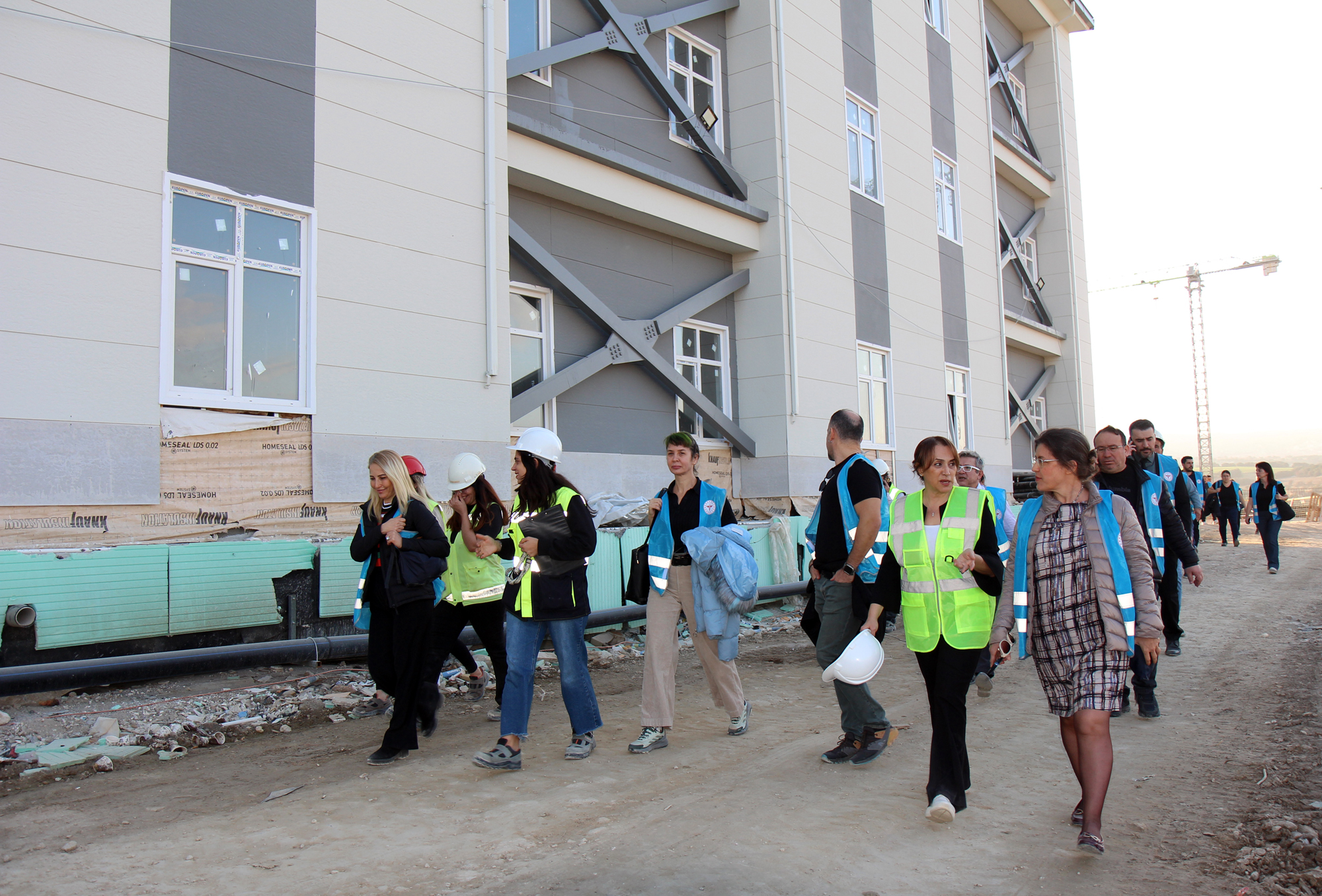 Ziyaret kapsamında İnşaat Firma yetkililerinden bilgi alan İl Sağlık Müdürü Uz. Dr. Berna Öztürk ve beraberindeki heyet, acil servis planlamasından polikliniklere, ameliyathanelerden, yoğun bakım üniteleri ve görüntüleme merkezlerine kadar tüm bölümleri dolaştı, birimler ve servisler yerleşim planlarını yerinde değerlendirdi.