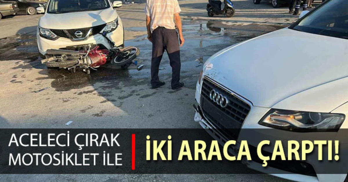 Denizli’de sanayide çırak olarak çalışan 14 yaşındaki genç, motosiklet ile seyri sırasında aceleci davranışı sonucu iki otomobile çarparak savruldu. Kazada genç çocuk yaralandı.