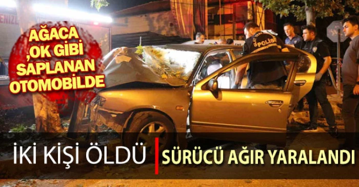 Ağaca ok gibi saplanan otomobilde 2 kişi öldü, sürücü ağır yaralandı