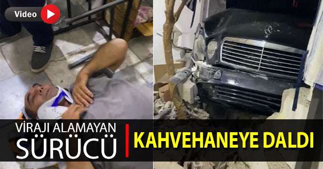 Denizli’de alkollü olduğu iddia edilen sürücü hızlı girdiği virajı alamayınca yol üzerinde bulunan kahvehaneye daldı.