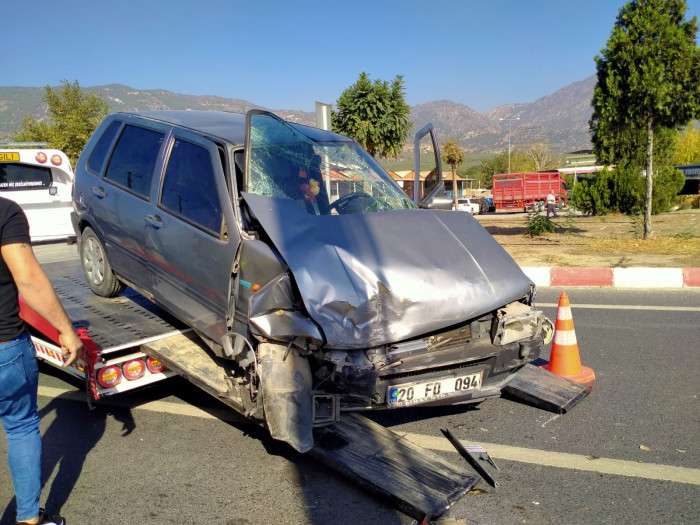 Kaza, Buharkent ilçesi Hal Kavşağı mevkiinde meydana geldi. Edinilen bilgiye göre 09 ZE 626 plakalı ticari araç ilçe merkezinden çıkarak karşıya geçmek istedi. O esnada Aydın Denizli istikametinde seyir halinde olan 20 FD 094 plakalı otomobil ile çarpıştı. Çarpışmanın etkisiyle otomobil içerisinde bulunan 2 kişi ile ticari aracın şoförü yaralandı. Kazayı görenler durumu 112 Acil Çağrı Merkezi’ne bildirdi. İhbar üzerine bölgeye sağlık ve polis ekipleri sevk edildi. Kısa sürede bölgeye gelen sağlık ekipleri ilk müdahalenin ardından yaralıları ambulansla hastaneye kaldırdı. Kazada otomobil kullanılamaz hale gelirken, kaza ile ilgili inceleme başlatıldı.