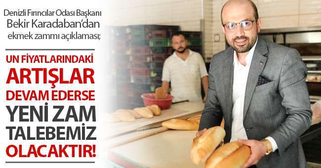Denizli Fırıncılar Odası Başkanı Bekir Karadaban, Denizli'de ekmeğe yapılan zammın artan un, maya ve diğer giderlerin artmasına bağlı olduğunu belirtirken, “Un fiyatlarındaki artışlar devam ederse önümüzdeki günlerde yeni bir zam daha talebimiz olabilir” dedi.