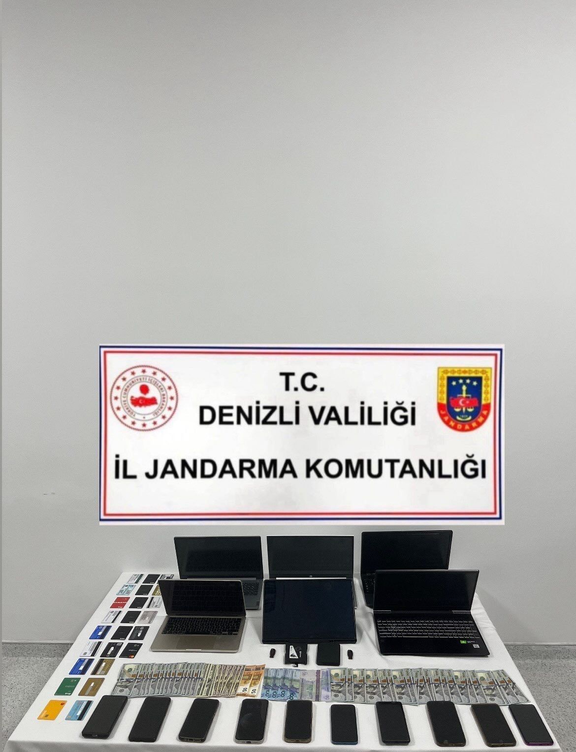 Denizli İl Jandarma Komutanlığı ekipleri tarafından yürütülen soruşturma kapsamında nitelikli dolandırıcılık suçunu bilişim sistemlerini kullanarak işlediği belirlenen şüphelilere yönelik operasyon düzenlendi. 9 ilde 14 şüpheliye yönelik düzenlenen eşzamanlı operasyon kapsamında, 18 adet cep telefonu, 19 adet sim kart, 6 adet laptop, 4 adet USB bellek, 1 adet sahte kimlik, 1 adet tablet, 1 adet harici hard disk, 3 bin 800 dolar ve 440 manat tutarında para ele geçirildi. Jandarmadaki işlemlerinin ardından 14 şüpheli geniş güvenlik tedbirleriyle adliyeye sevk edildi.