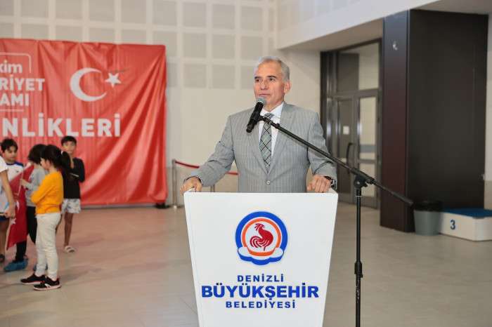 Denizli’de Cumhuriyet’in kuruluşunun 99’ncu yıldönümü kutlamaları Denizli Büyükşehir Belediyesi 29 Ekim Cumhuriyet Bayramı Yüzme Şenlikleri ile başladı. Büyükşehir Belediyesinin düzenlediği yarışmalara Denizli’de faaliyet gösteren Denizli Büyükşehir Belediyespor, Denizli Yüzme İhtisas Spor Kulübü, Pamukkale Üniversitesi Mensupları Spor Kulübü, Pamukkale Su Sporları Kulübü ve Denizli Gençlik Hizmetleri ve Spor Kulübü’nden 8-9-10 yaş grubu 180 minik sporcu katıldı. Denizli Büyükşehir Belediyesi Kayıhan Kapalı Yüzme Havuzu ve Spor Kompleksi’nde gerçekleşen müsabakaları Büyükşehir Belediye Başkanı Osman Zolan, Genel Sekreter Yardımcısı Ömer Faruk Özer, Gençlik ve Spor İl Müdürü Ömer İlman, sporcular, aileleri ve çok sayıda vatandaş izledi. Saygı duruşunda bulunup, İstiklal Marşı’nın okunmasıyla başlayan programda sporcuların geçit töreni renkli görüntülere sahne oldu. Gençlik ve Spor İl Müdürü Ömer İlman, bu özel turnuvaya desteklerinden dolayı Başkan Zolan’a teşekkür etti.