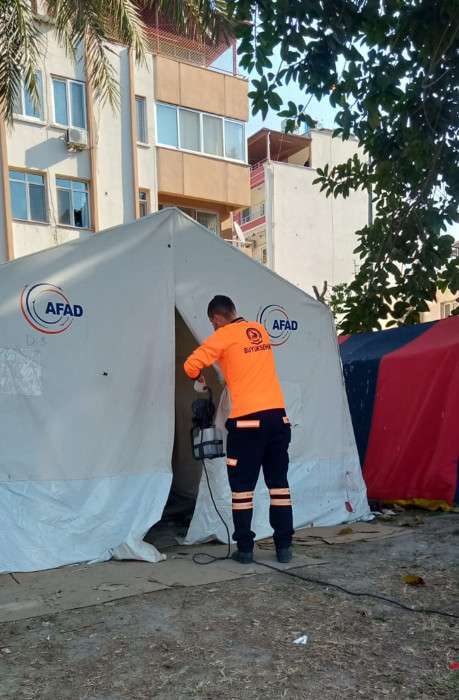 Büyükşehir'den deprem bölgesinde dezenfeksiyon seferberliği
