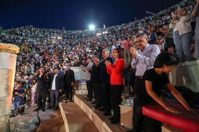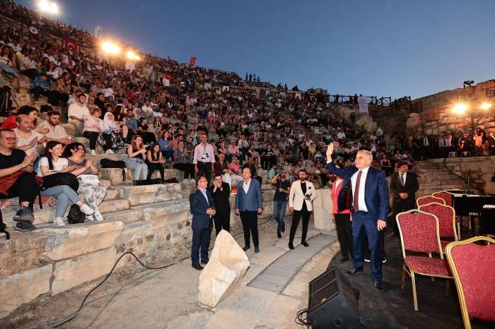 Denizli Büyükşehir Belediyesinin destekleriyle geçtiğimiz yıl restorasyonu tamamlanarak şehre yeniden kazandırılan Laodikya Antik Kenti’ndeki 2200 yıllık Batı Tiyatrosu bu kez Cumhurbaşkanlığı Senfoni Orkestrası’nın muhteşem konseriyle yeniden seyirciyle buluştu. 15 bin kişilik tiyatro hınca hınç doldu.