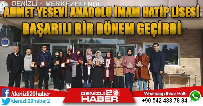 Ahmet Yesevi Anadolu İmam Hatip Lisesi olarak; Denizli ilinde ‘’Ezan Okuma İl Birincisi’’,Kur’an-ı Kerimi Güzel Okuma Yarışmasında,Kızlarda il birincisi,Erkeklerde il ikincisi,Hafızlık Yarışmasında Erkeklerde ve Kızlarda il ikincisi,Genç Sesler Musiki Yarışmasında Kızlarda il birincisi,Erkeklerde il ikincisi,Hutbe Yarışmasında il dördüncüsü,Atletizm Yarışmasında il birincisi,Hentbol Yarışmasında il ikincisi olarak sevindirici başarılara imza atmışlardır.Öğrencilerimizin her birini,Okul Yönetimi olarak teker teker tebrik ederiz.Başarılarının daim olmasını temenni ederiz diyen Osman Çakıroğlu,tabiki de bu başarılarda çok büyük emekleri olan saygı değer öğretmenlerimize de ayrıca teşekkür ederiz dedi.