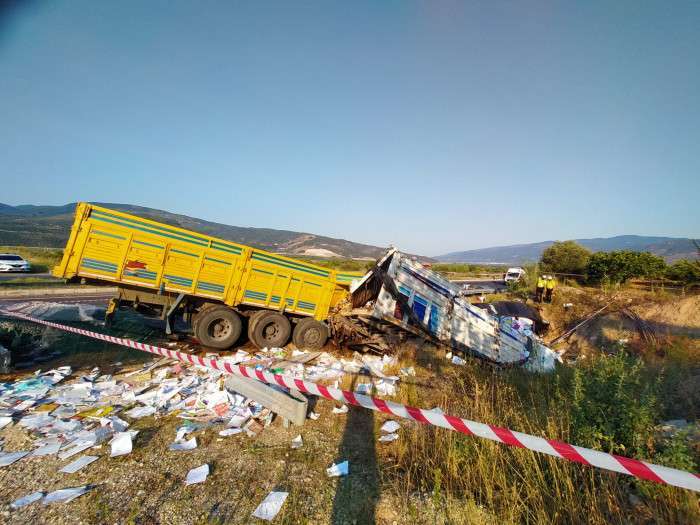 Edinilen bilgiye göre kaza, bu sabah 06.45 sıralarında Denizli-Aydın Karayolu üzerinde meydana geldi. Denizli yönünden Aydın istikametine seyir halinde olan FJ 473 AD yabancı plakalı lüks otomobil, sürücüsünün henüz bilinmeyen bir nedenle direksiyon hakimiyetini kaybetmesi sonucunda bariyerlere girdi. Otomobilin ortasından geçen bariyerler aracı hurdaya çevirirken, içeride bulunan 2 kişi hayatını kaybetti, iki kişi de yaralandı. Kazayı görerek yardım amacıyla duran kamyona aynı istikametten gelen başka bir tırın arkadan çarpması sonucu her iki kamyon kaza yapan otomobilin bulunduğu şarampole devrildi. Kaza sonrası kamyonlarda bulunan kırtasiye ve inşaat malzemeleri yola saçılarak ortalık adeta savaş alanına döndü.
