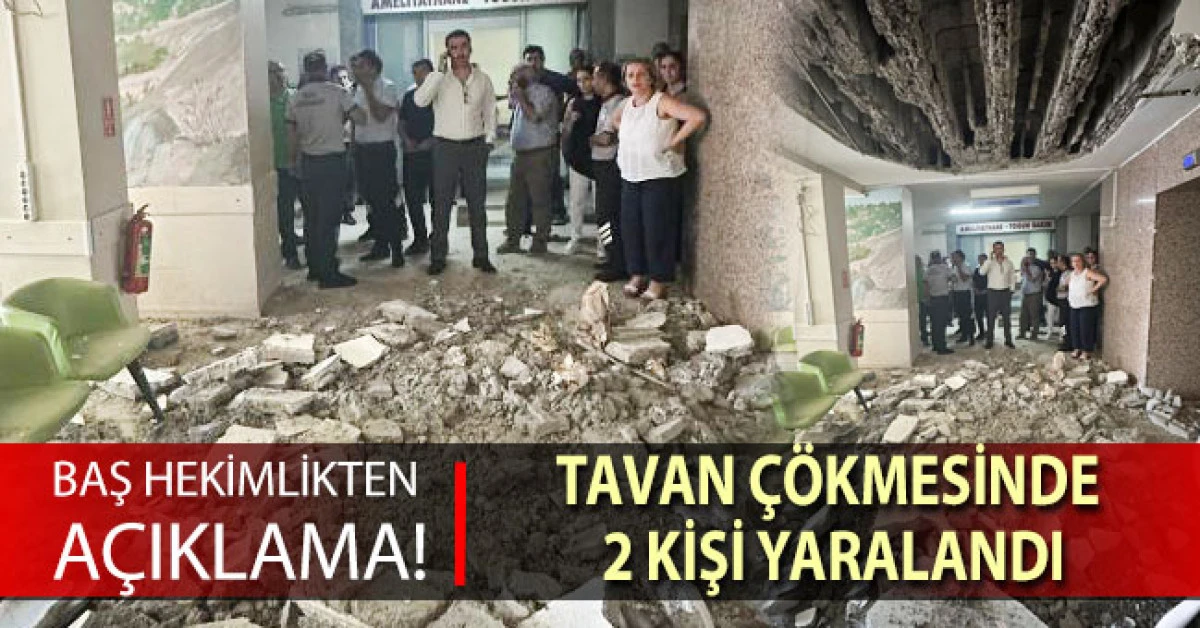 Denizli Devlet Hastanesinde yaşanan tavan çökmesine ilişkin hastane Baş Hekimliği açıklamada bulundu. Yapılan açıklamada olayda 2 kişinin düşen moloz parçalarıyla yaralandığı bildirildi.