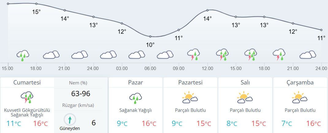 Denizli'de yarın hava sıcaklığ 11 ila 16 derece arası değişirken, hava kuvvetli ve gök gürültülü sağanak yağış şeklinde olacağı tahmin ediliyor.