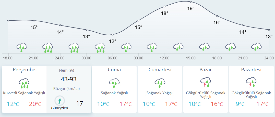 Bölge genelinin çok bulutlu, sağanak yağmurlu geçeceği tahmin ediliyor. Yağışların yer yer kuvvetli olması bekleniyor.