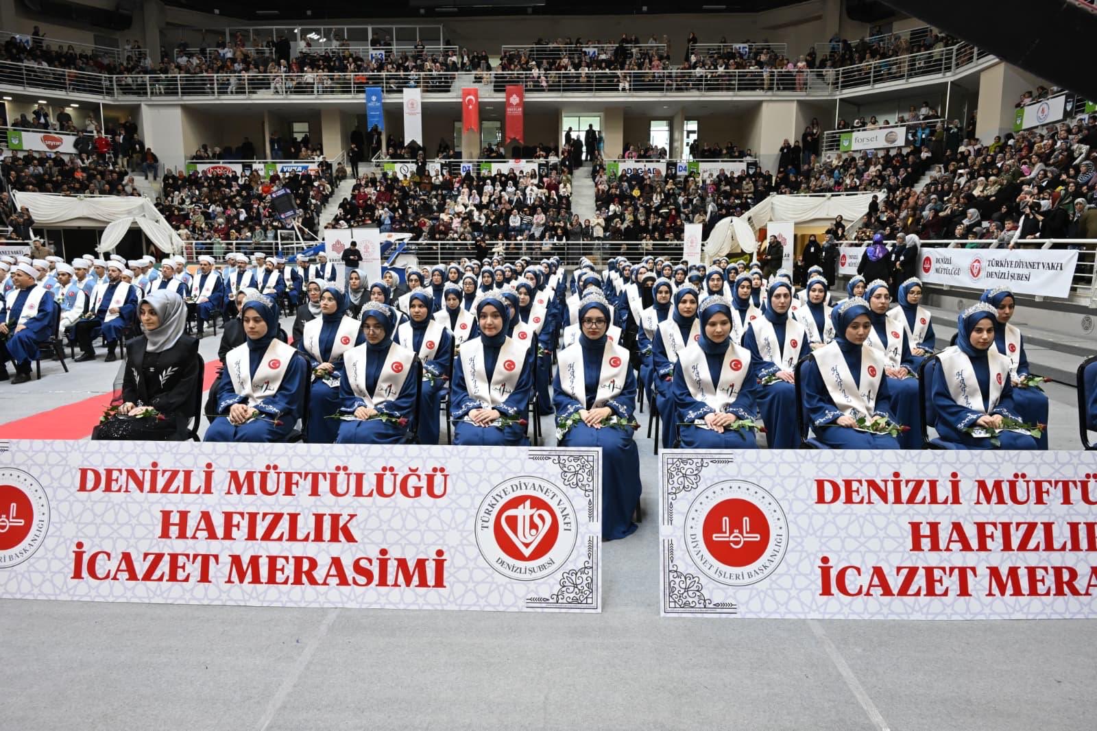 Denizli İl Müftülüğüne bağlı Merkezefendi ve Pamukkale ilçe Kur'an kurslarında Kur’ân-ı Kerîm’i hıfzederek bu kutlu yolculuğu tamamlayan 168 hafız için icazet töreni düzenlendi.