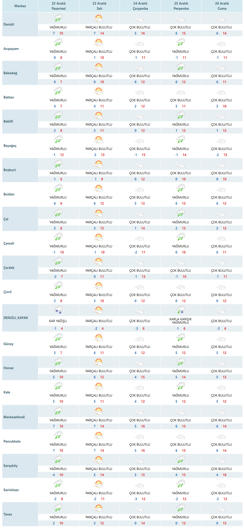 DENİZLİ İLÇELERİNDE 5 GÜNLÜK HAVA RAPORU: