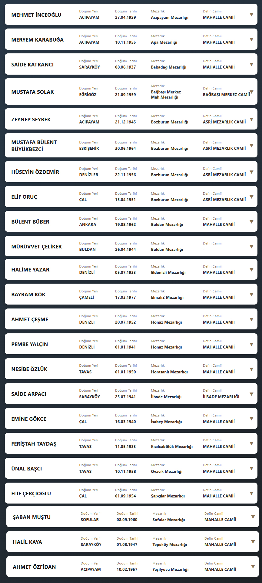 Denizli'de bugün vefat edenler 19 Şubat 2026