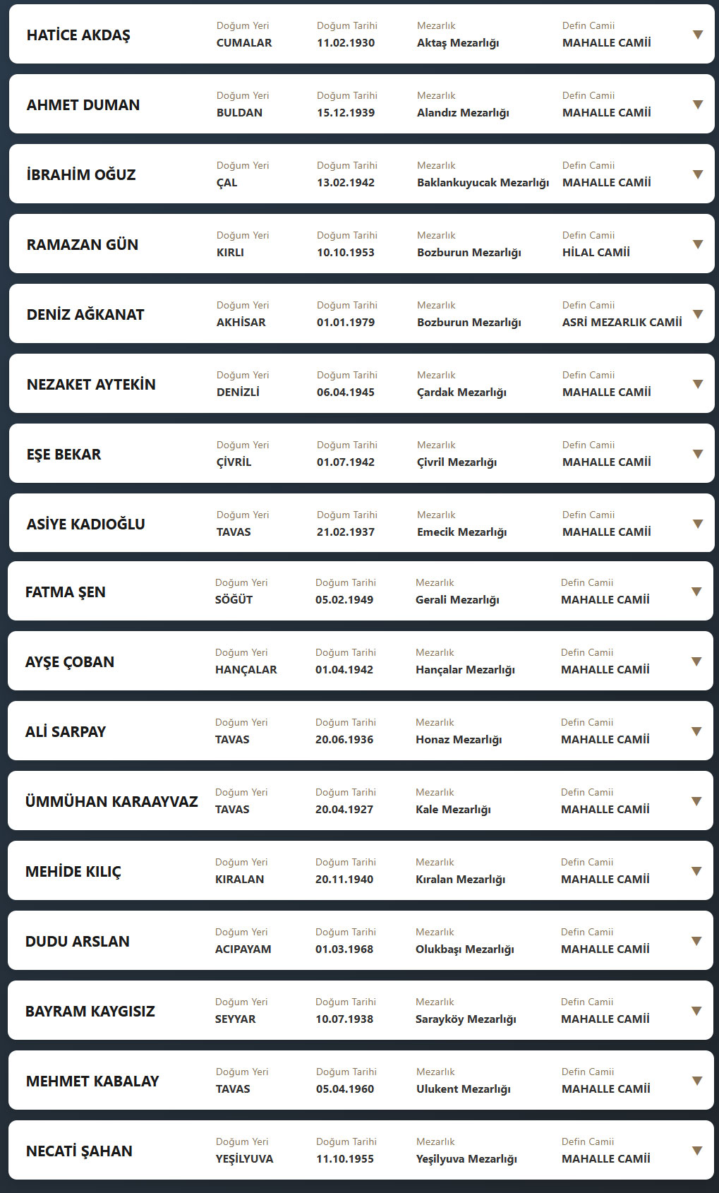 Denizli'de bugün vefat edenler 24 Nisan 2026