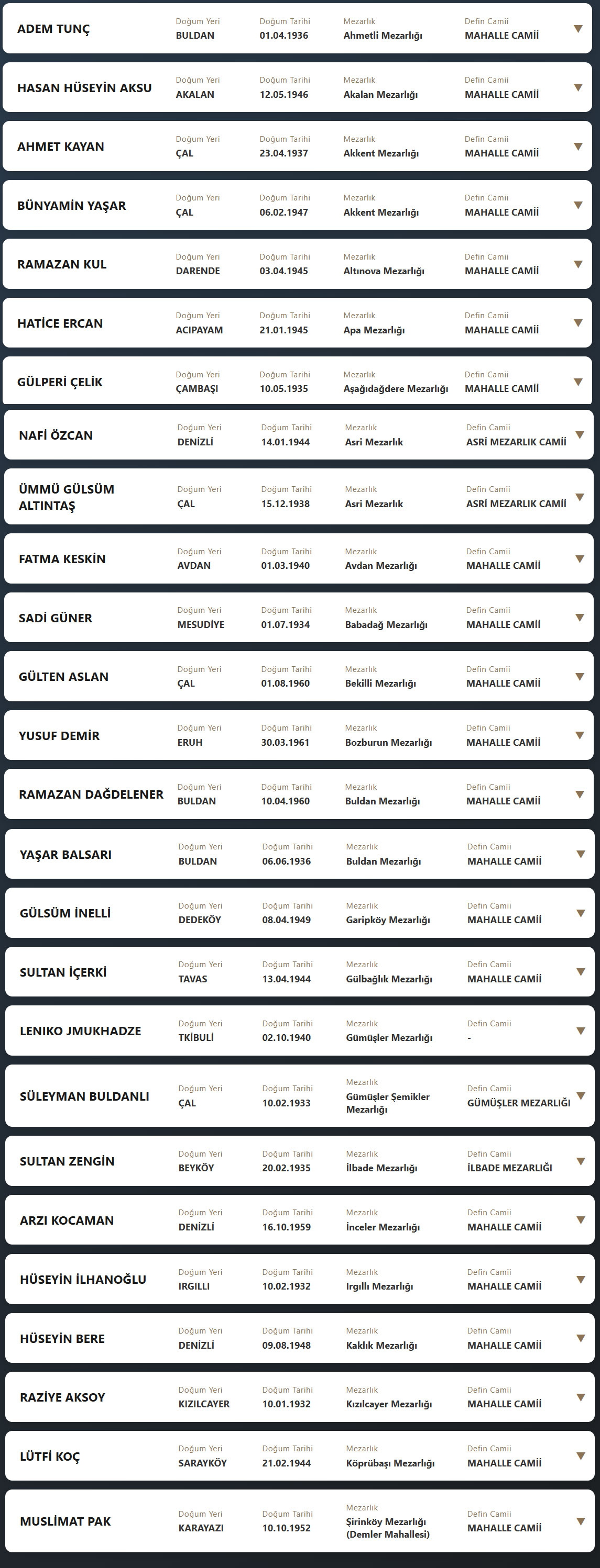 Denizli'de bugün vefat edenler 25 Şubat 2026