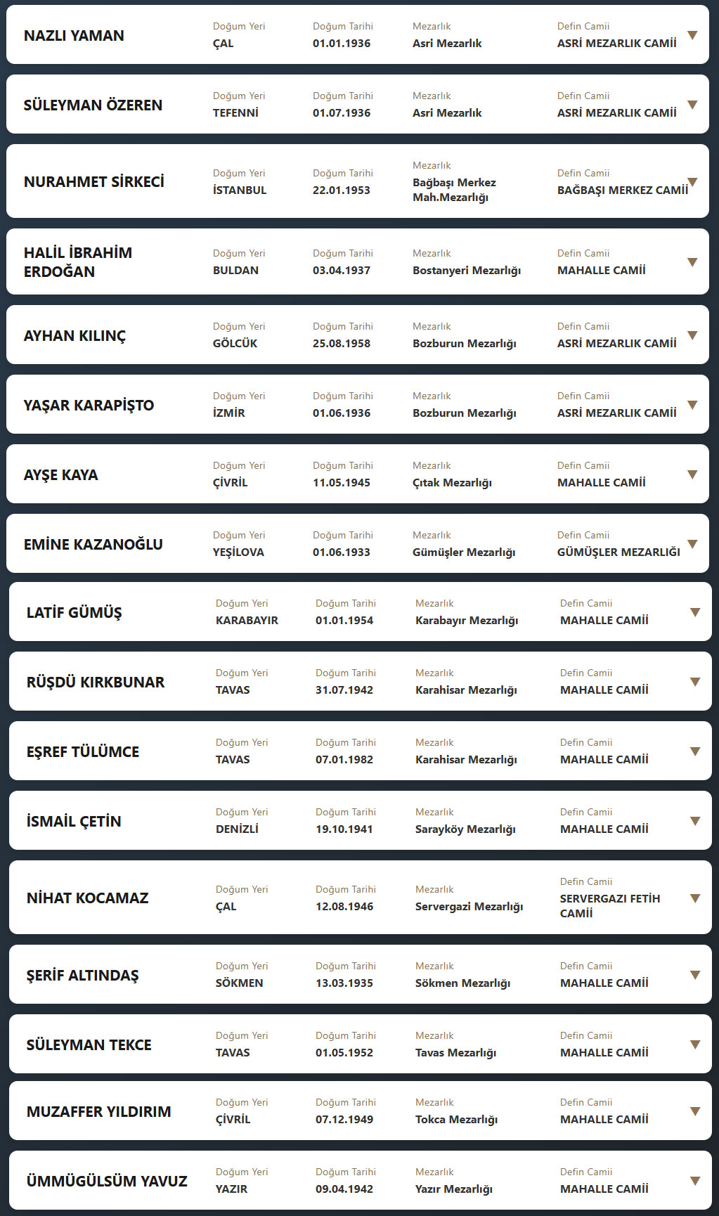 Denizli il sınırları içerisinde vefat edenlerin, cenaze namazlarının kılınacağı cami ve kaldırılacağı mezarlık bilgileri... 27 Mart 2026 Cuma günü Denizli'de vefat edenler.
