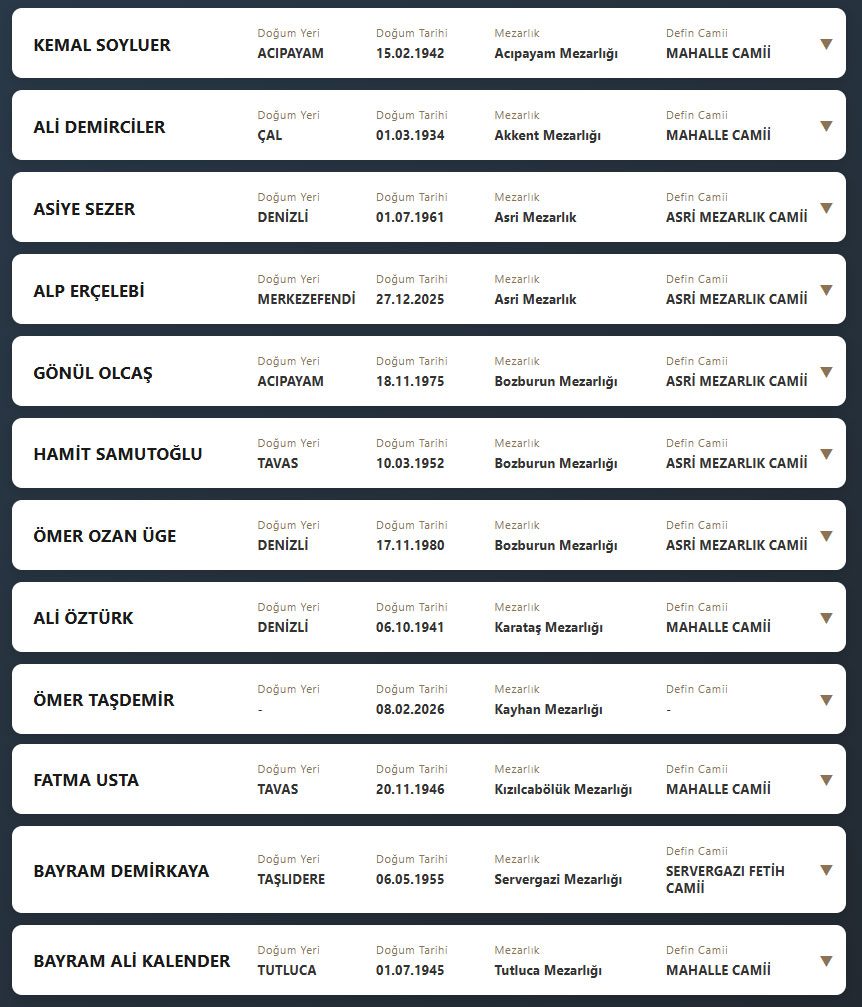 Denizli'de bugün vefat edenler 8 Şubat 2026
