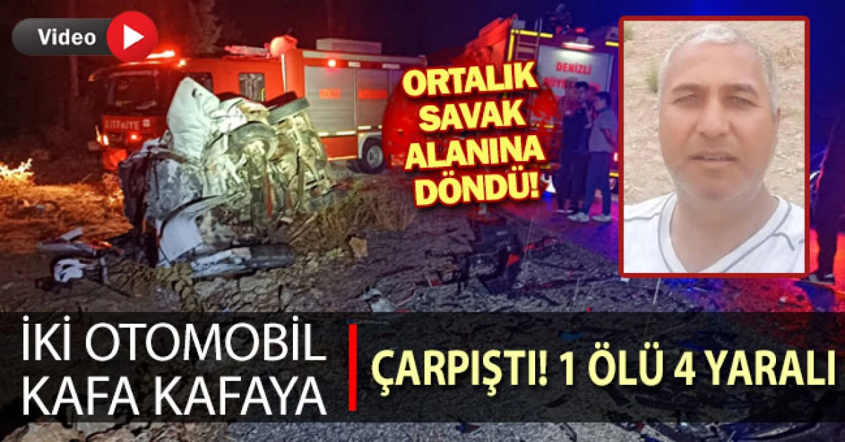 Denizli’nin Acıpayam ilçesinde gece saatlerinde iki otomobil kafa kafaya çarpışması sonucu 1 kişi hayatını kaybederken 4 kişi de yaralandı.
