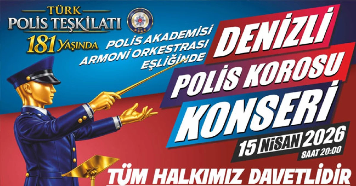 Türk Polis Teşkilatı’nın 181. kuruluş yıl dönümü etkinlikleri çerçevesinde, Denizli’de anlamlı bir konser programı düzenlenecek. Denizli Polis Korosu tarafından, Polis Akademisi Armoni Orkestrası eşliğinde icra edilecek konser, 15 Nisan Çarşamba günü saat 20.00’de Nihat Zeybekci Kongre ve Kültür Merkezi Özay Gönlüm Salonu’nda gerçekleştirilecek. Programa tüm vatandaşların davetli olduğu bildirildi.