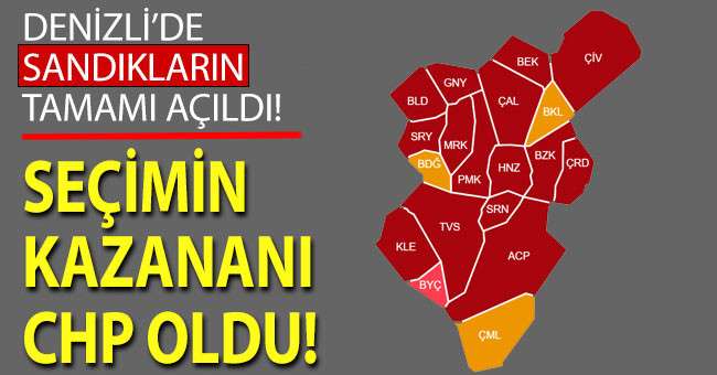 Denizli’de 31 Mart 2024 Mahalli İdareler Genel Seçimlerin de oy kullanılan 2633 sandığın tamamı açıldı. Resmi olmayan sonuçlara göre seçimi önde tamamlayan CHP, Büyükşehir ve 15 ilçeden zaferle çıktı.