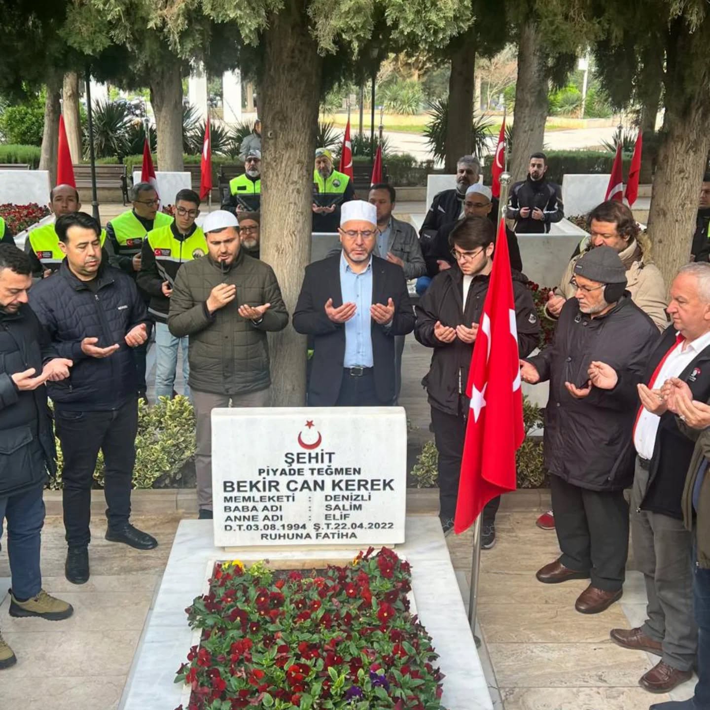 Namazın ardından cemaatle birlikte tesbihat, tevbe-i istiğfar ve dualar edildi. Program, cami imam hatibi Mehmet Tekin’in Kur’an-ı Kerim tilavetiyle devam etti. Etkinliğe Denizli İl Müftüsü Abdullah Pamuklu, Merkezefendi İlçe Müftüsü Osman Güneş, Türkiye Harp Malulü Gaziler Şehit Dul ve Yetimleri Derneği Başkanı Mustafa Işık, Kızılay Merkezefendi Şube Başkanı Fatih Cabir Çalık, Türkiye Muhtarlar Derneği Denizli Şube Başkanı Osman Yüreci, Denizli Efeleri Yörükleri Derneği temsilcisi Mustafa Yalıbir, şehidin babası Salim Kerek, sivil toplum kuruluşları, Muhafazakar Motorcular üyeleri, cami cemaati ve çok sayıda vatandaş katıldı.