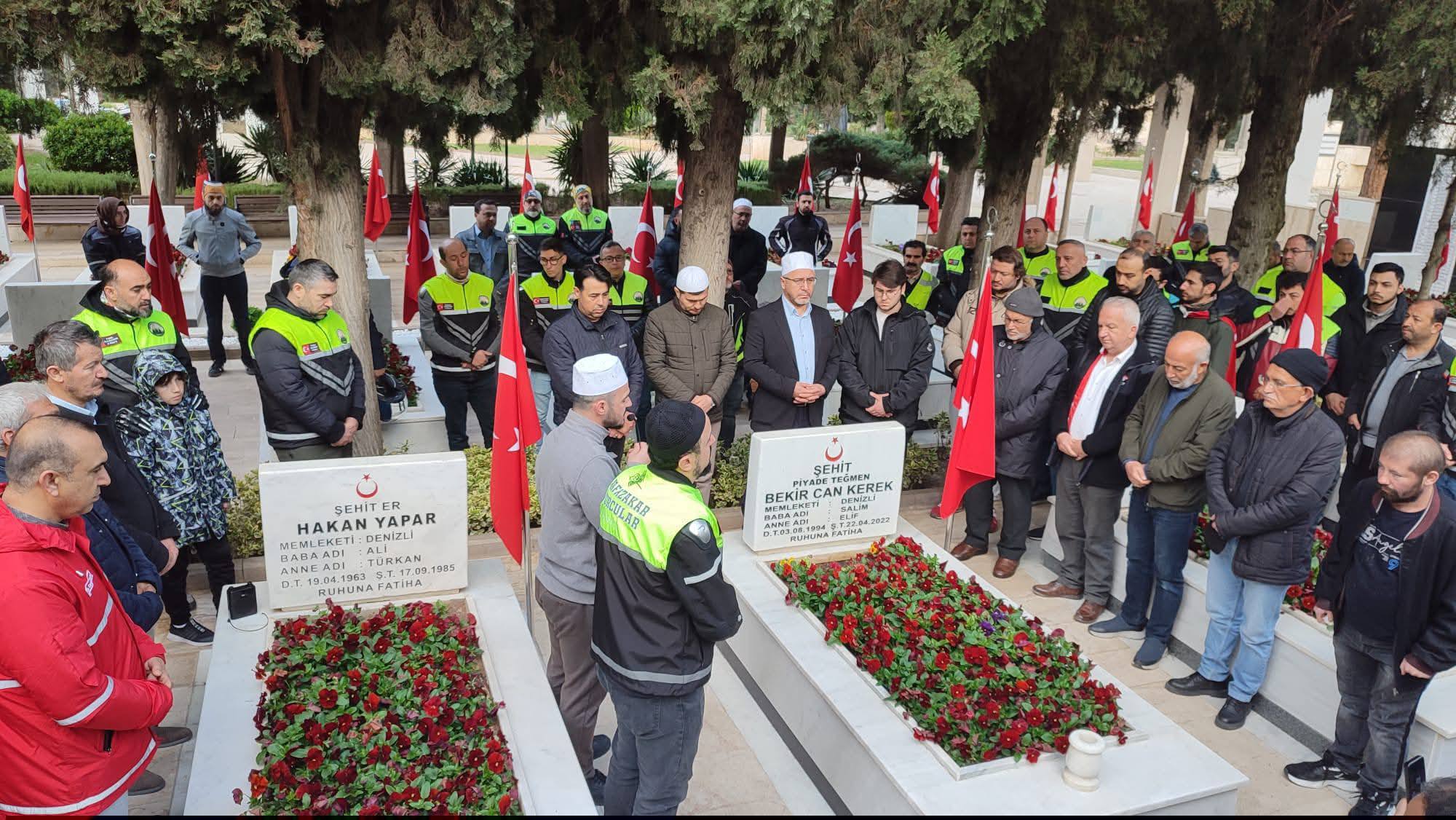 Programın ardından İl Müftülüğü tarafından katılımcılara çorba ikramı yapıldı. Daha sonra konvoy eşliğinde Denizli Asri Mezarlığı’nda bulunan şehitlik ziyaret edildi. Şehit Piyade Teğmen Bekir Can Kerek’in kabri başında Kur’an-ı Kerim okunarak dualar edildi. Merkezefendi İlçe Müftüsü Osman Güneş, şehitlerin milletin en kıymetli değerleri olduğunu belirterek, "Onları unutmamak, hatıralarını yaşatmak ve dualarla anmak hepimizin ortak görevidir" dedi. Duygusal anların yaşandığı program, katılımcıların şehitler için ettiği dualarla sona erdi.