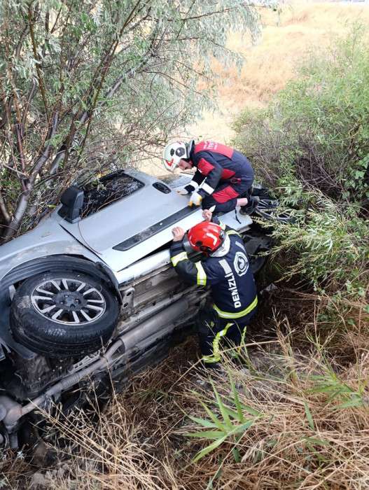 Kaza, akşam saatlerinde Denizli’nin Pamukkale ilçesine bağlı Pamukkale Mahallesi’nde meydana geldi. Karahayit yönüne seyir halinde olan sürücüsü henüz belirlemeyen otomobil, yağışla birlikte kayganlaşan yolda kontrolden çıkarak karşı şeritten gelen servis aracı ile kafa kafaya çarpıştı. Kaza yapan araçları gördükten sonra onlarla çarpmamak için manevra yapan hafif ticari araç ise kontrolden çıkarak şarampole uçtu. İhbar üzerine bölgeye sağlık, itfaiye ve jandarma ekipleri sevk edildi. Olay yerine Denizli Büyükşehir Belediyesi itfaiye ekipleri araçta sıkışan yaralıları kurtararak sağlık ekiplerine teslim etti. Sağlık ekipleri tarafından ilk müdahaleleri olay yerinde yapılan yaralılar ambulanslarla çevre hastanelere sevk edildi.
