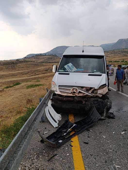 Denizli’nin Pamukkale ilçesinde kontrolden çıkan otomobilin karşı yönden gelen servis minibüsüyle çarpıştı. Araçlara çarpmamak için manevra yapan hafif ticari araç ise kontrolden çıkarak şarampole uçtu. Trafik kazası sonucunda 9 kişi yaralandı.