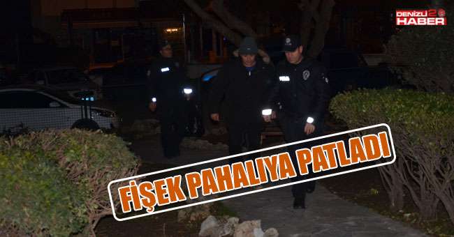 Denizli’de yılbaşı gecesinde polis ekipleri cadde ve sokaklarda denetimlerini sürdürüyor. Trafik ve eğlence mekanları başta olmak üzere halkın yoğun olarak kullandığı yerlerde denetimlerini artıran polis ekipleri, izinsiz havai fişek patlatılmasına da müsaade etmedi. Yılbaşının ilk saniyelerinde yeni yılı kutlamak için Hüseyin Yılmaz Caddesi’nde bulunan Kınıklı Şehitler Polis Merkezi Amirliği’ni 100 metre yakında havai fişek patlatan Özkan Ö., polis ekipleri tarafından kıskıvrak yakalanarak cezai işlem uygulandı. 320 TL para cezası kesilen Özkan Ö., ifadesi alındıktan sonra serbest bırakıldı.