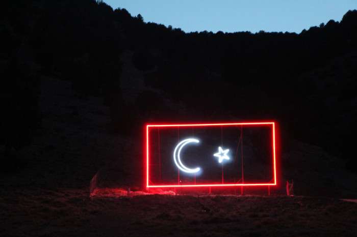 Mahalle sakinlerinden Mehmet Yüksel’de, “40 yıl önce Besni Dursun Hocamız burada öğrencilerine Atatürk Ormanı yazdırdı. Ondan sonra bizde bayrak sevgisi oluştu. Bu ışıklı bayrağımızı yaptık. Aşağıdaki mahallelerden seyrediyorlar. Hocamızın hatırasını yaşatıyoruz. 5 kilometre öteden bayrağımız gözüküyor” diye konuştu.