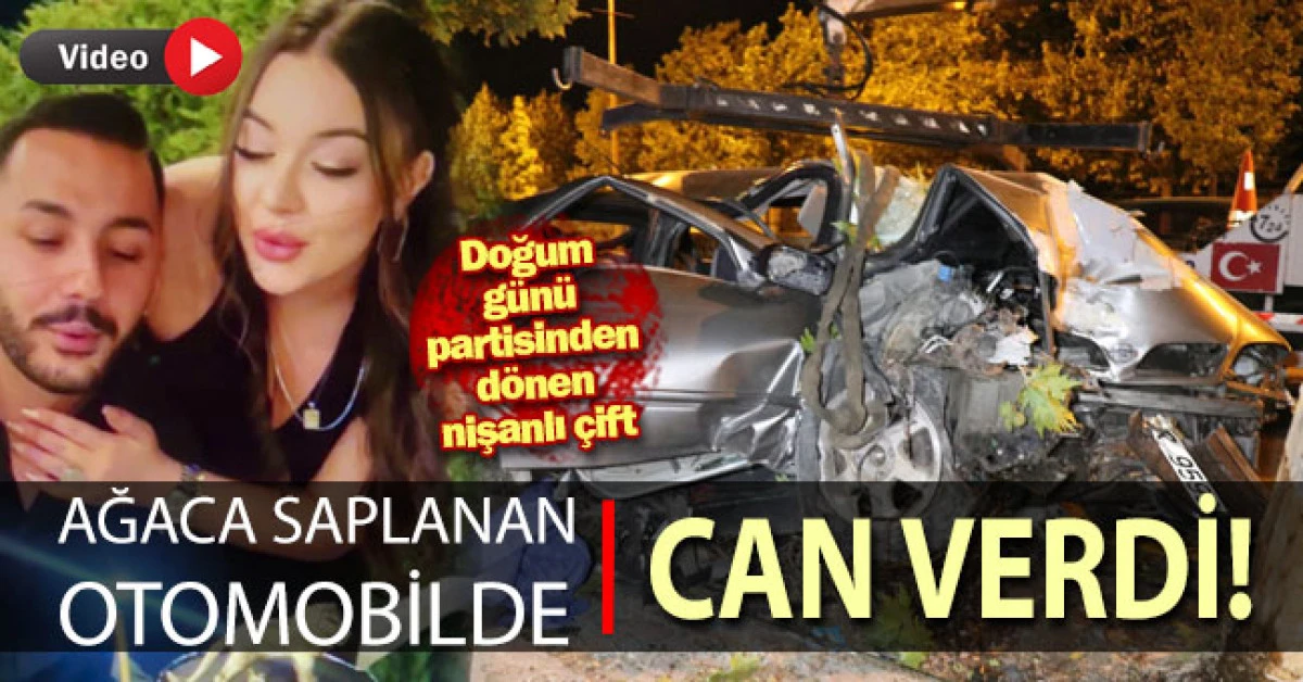 Doğum günü partisinden dönen nişanlı çift ağaca saplanan otomobilde can verdi
