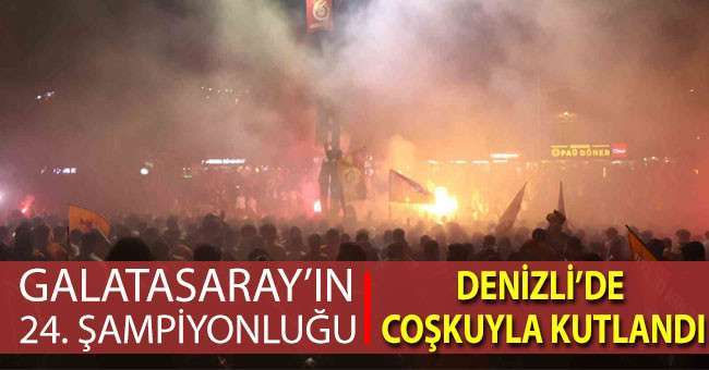 Trendyol Süper Lig’in 38. haftasında deplasmanda Konyaspor’u 3-1 yenerek 24. şampiyonluğuna ulaşan Galatasaray taraftarları, tüm yurt genelinde ve yurt dışında olduğu gibi Denizli’de de şampiyonluğu coşkuyla kutladı. Maçın bitiş düdüğünün ardından başlayan kutlamaların Denizli’deki adresleri Çınar Meydanı ve Pamukkale Üniversitesi Kampüsü oldu. Şampiyonluğu doyasıya kutlayan sarı-kırmızılı taraftarlar ellerinde bayraklar ve araç konvoylarıyla şehir turu attı. Burada şampiyonluk şarkıları söyleyen taraftarlarından bazıları çocuklarını bu coşkuya ortak etti. Meşaleler yakıp, Galatasaray marşları söyleyen taraftarlar, şampiyonluğu doyasıya kutladı.
