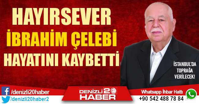 Denizlili hayırsever İbrahim Çelebi İstanbul’da tedavi gördüğü hastanede hayatını kaybetti. Çelebi’nin cenazesi İstanbul’da toprağa verilecek.   Hayırsever İbrahim Çelebi (79), rahatsızlığı nedeniyle bir süredir İstanbul’da tedavi görüyordu. Durumu ağırlaşan Çelebi dün yapılan tüm müdahalelere rağmen kurtarılmayarak hayatını kaybetti.   İbrahim Çelebi’nin ölüm haberi ailesi ve sevenlerini yasa boğarken, Çelebi’nin cenazesi bugün düzenlenecek törenle İstanbul Karaca Ahmet Mezarlığı’nda toprağa verilecek.   Hayırsever Çelebi, Buldan İlçesi’nde İbrahim-Filiz Çelebi Anadolu İmam Hatip Lisesi’ni eğitime kavuşturmuştu.   İl Milli Eğitim Müdürü Mahmut Oğuz, hayırsever Çelebi’nin ölümü nedeniyle başsağlığı mesajı yayınlayarak, “ Eğitim camiası olarak “Eğitimin Hamisi” hayırsever İbrahim Çelebi’yi kaybetmenin büyük üzüntüsünü yaşıyoruz. Merhum İbrahim Çelebi’ye Allah’tan rahmet, kederli ailesine başsağlığı dileriz” ifadelerine yer verdi.