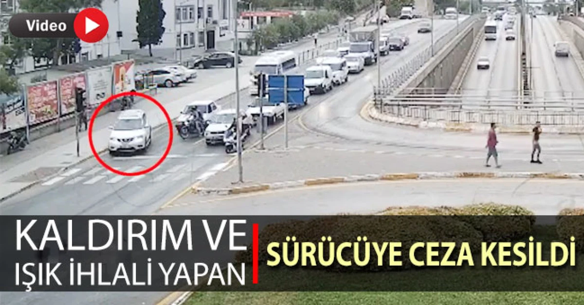 Denizli’de kavşakta kırmızı ışıkta bekleyen araçları kaldırımdan ilerleyerek geçen hem kaldırım ihlali hem de kırmızı ışık ihlali yapan sürücüye toplamda 5 bin 146 lira ceza kesildi.