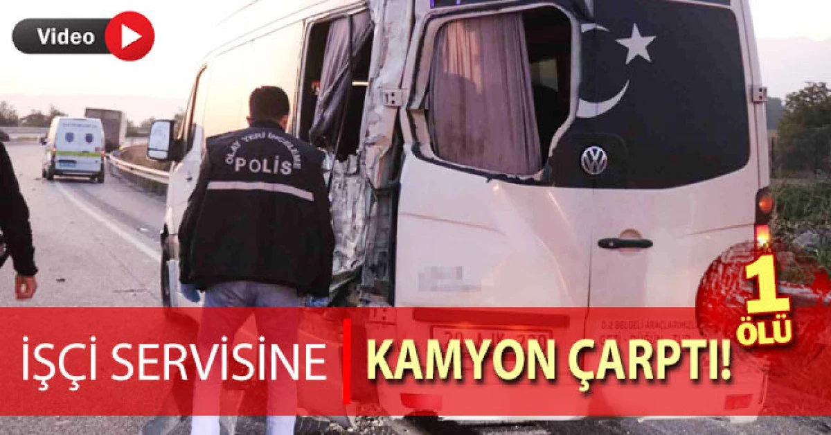 Denizli'de işçi almak için çevreyolu üzerinde emniyet şeridinde bekleyen servise, aynı yönden gelen kamyon çarptı. Kazada servis şoförünün babası hayatı hayatını kaybetti.