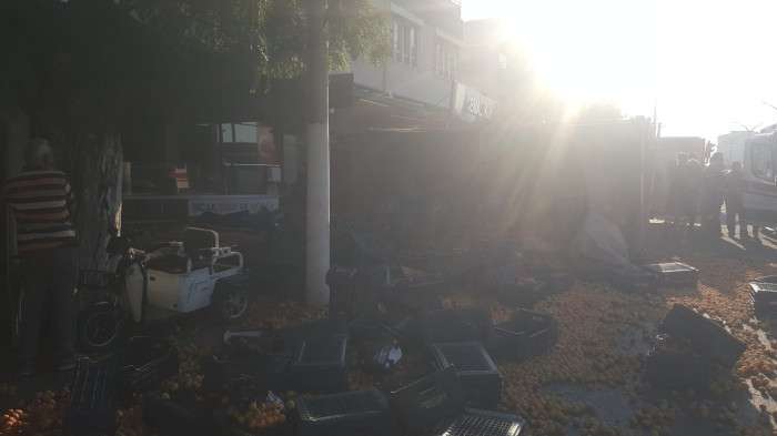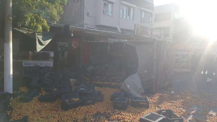 Aydın’ın Efeler ilçesinde meydana gelen kazada, kayısı yüklü kamyon devrilirken, kazada 3 kişi yaralandı.