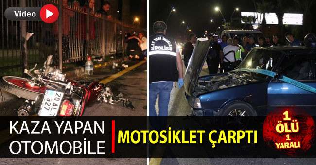 Denizli'de karıştığı kaza sonrası yolda bekleyen otomobile motosiklet çarptı. Motosiklette bulunan iki gençten biri hayatını kaybetti, diğeri yaralandı.