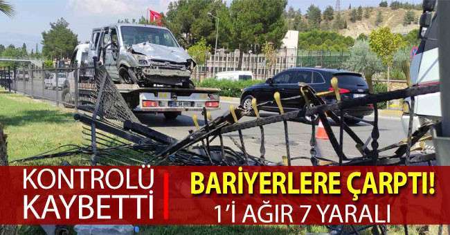 Kontrolden çıkan aracın refüjdeki bariyerlere çarpması sonucu 1’i ağır 7 kişi yaralandı