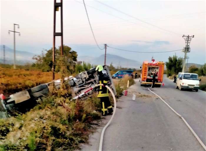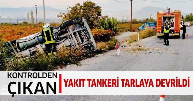 Denizli’nin Honaz ilçesinde kontrolden çıkan dolu yakıt tankerinin tarlaya devrilmesi sonucu meydana gelen kazada 1 kişi yaralandı.