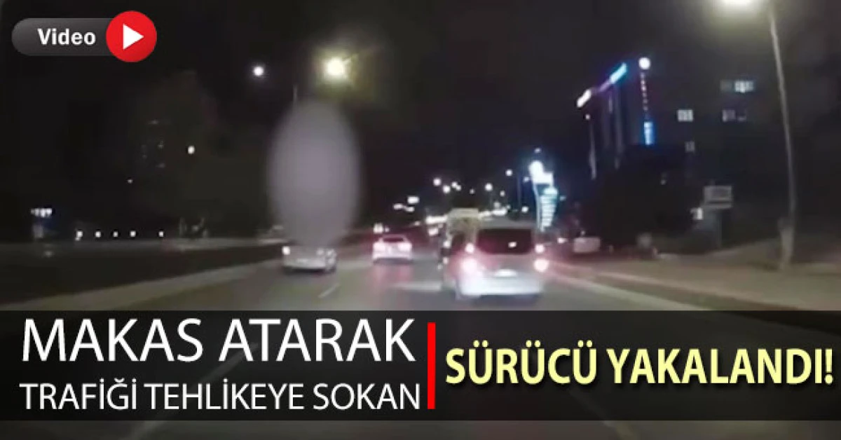 Makas atarak trafikte tehlike oluşturan sürücü yakalandı