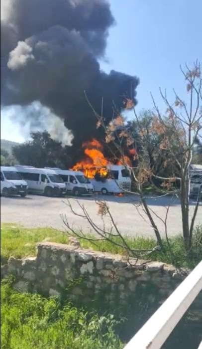 Edinilen bilgiye göre, Ortakent Pazaryeri otoparkında park halindeki 48 S 1258 plakalı okul servisinin sürücüsü, aracı çalıştırmak için marşa bastığı anda minibüste yangın başladı. Araçtan inen sürücü, çevredeki vatandaşlardan yardım istedi. Bölgedeki vatandaşlar, yangına müdahale etmeye çalıştı fakat alevler kısa sürede tüm aracı sardı. Okul servisinin yanındaki başka bir minibüs, hızlı şekilde bölgeden alınarak yanmaktan son anda kurtarıldı. İhbarın ardından Bodrum İtfaiye Grup Amirliği ekipleri ve Bodrum Belediyesi Zabıta ekipleri yangına müdahale etti. Okul servisinden çıkan siyah dumanlar, Yarımada’nın birçok yerinden görüldü. Minibüsteki alevler, otopark yanındaki ağaçlara da zarar verdi. Çıkan yangın yoğun müdahale sonucu söndürülürken, okul servisi aracı demir yığını haline geldi.