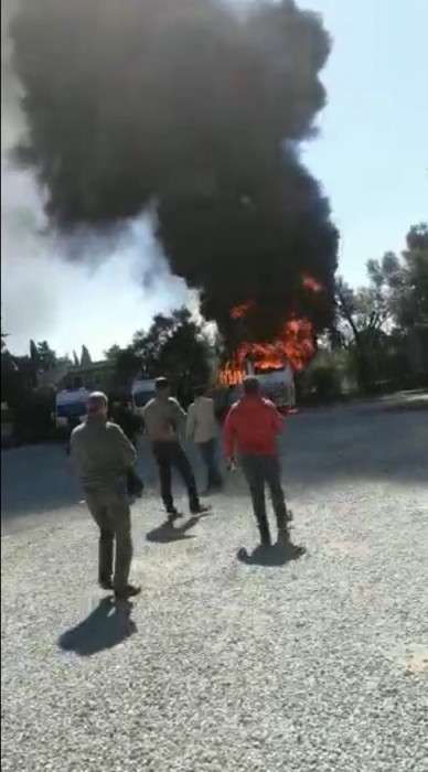 Okul servisi alev alev yandı