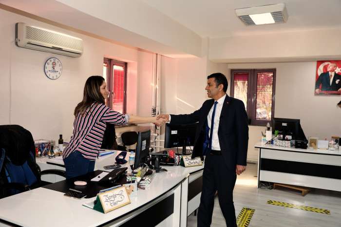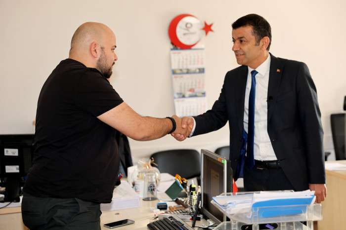 Bülent Nuri Çavuşoğlu bugün de eski Başkan Ali Marım’la birlikte Belediye Binasına gitti, memurları, işçileri ziyaret etti.