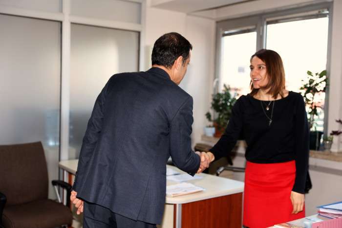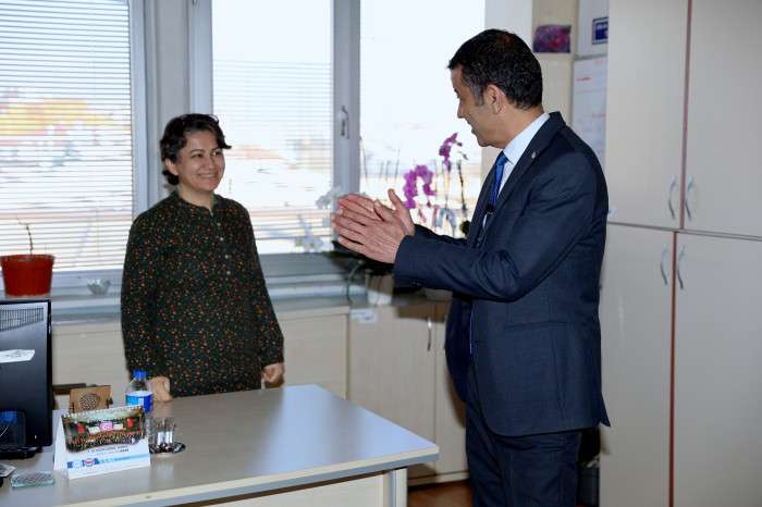 Belediye çalışanları tarafından ilgiyle karşılanan Çavuşoğlu, herkesle tek tek selamlaştı, tokalaştı.