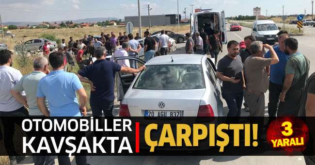Denizli’nin Çivril ilçesinde iki otomobilin kavşakta çarpıştığı kazada 3 kişi yaralı olarak hastaneye kaldırıldı.
