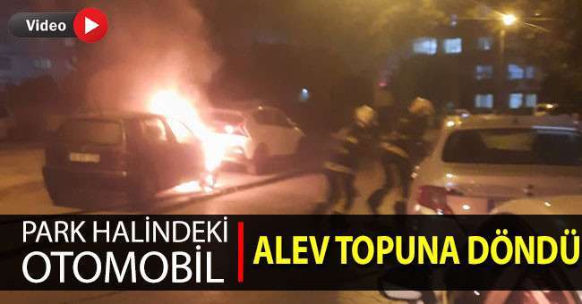 Denizli’nin Merkezefendi İlçesi’nde park halindeki otomobil alev alev yandı.