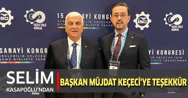 Selim Kasapoğlu'ndan Başkan Müjdat Keçeci'ye Teşekkür