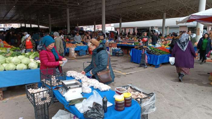 Diğer taraftan pazarda 80 liraya kilosu satılan kestanenin alıcısı olmadığı için kurulan sobanın üzerinde pişirilen kestaneleri esnafın kendilerinin yediği belirtildi. Tezgahlarda satılan meyve ve sebze fiyatlarının Ramazanın gelmesi ile artmaya başlandığı ifade edildi.